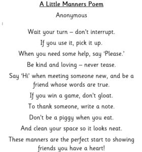 Each week in Year 2 we enjoy reading a new poem. This helps us to develop a love of reading and also supports our fluency. Poetry is brilliant for children because it builds rhythm and expression, introduces rich new vocabulary and encourages memory and performance skills.