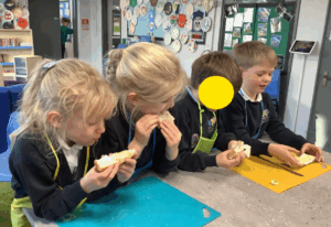 Year 2 had a fantastic time making banana sandwiches this week. The children worked safely and sensibly. They washed their hands carefully and learned how to hold a butter knife correctly while preparing their snack.