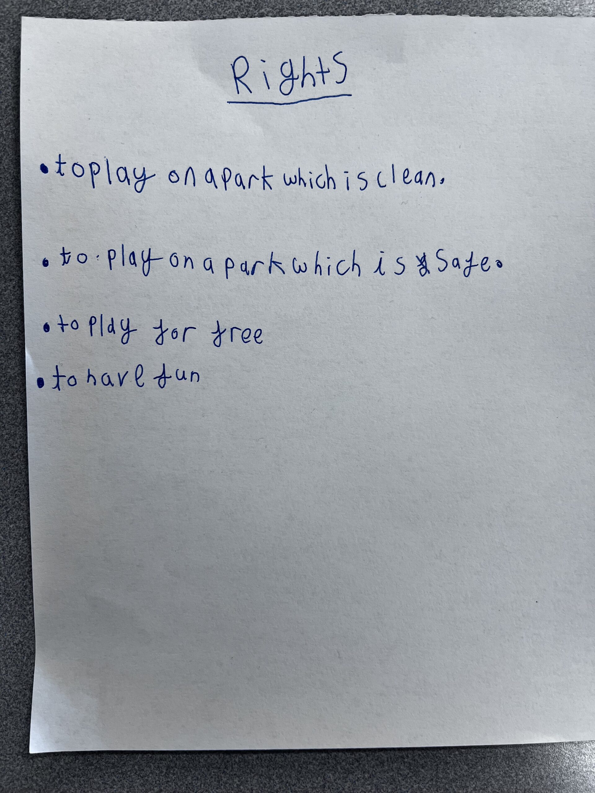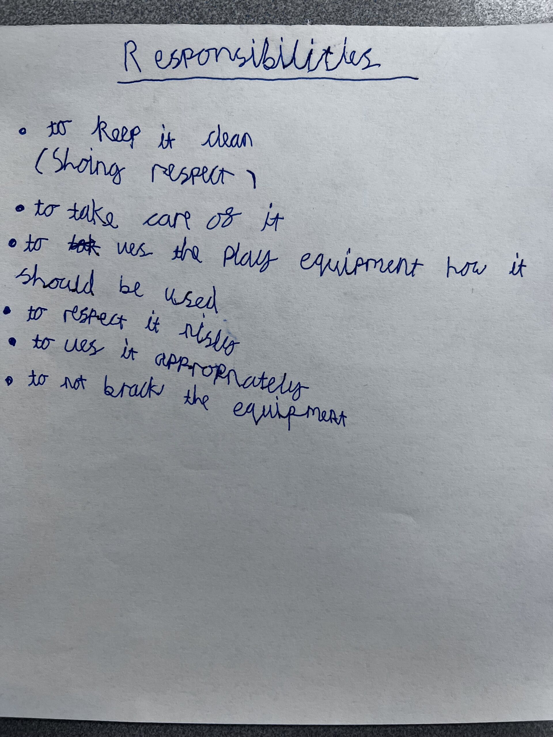 We are very excited about the new Sandringham Park but disappointed that not all users have taken care of it. This led us to reflect on our Living & Learning statement I know that rights come with responsibilities and how this links to using the park.