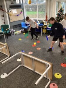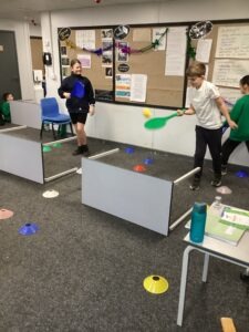 During this busy time of year, we often have to get creative with our lessons. Today, the KS1 children were using the hall to rehearse for the Nativity next week. We had a blast playing a combination of tennis and padel in the classroom. The children were able to demonstrate control and a delicate touch. In addition, we made sensible decisions with our choice of shot.