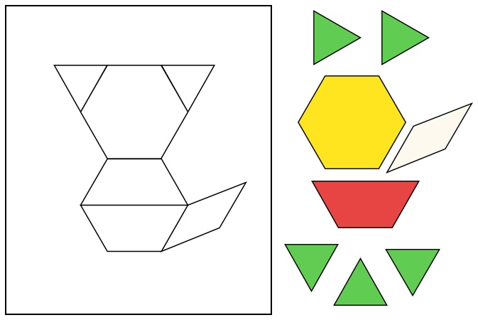 The children have been developing their spatial reasoning skills by placing and rotating shapes to create images.
